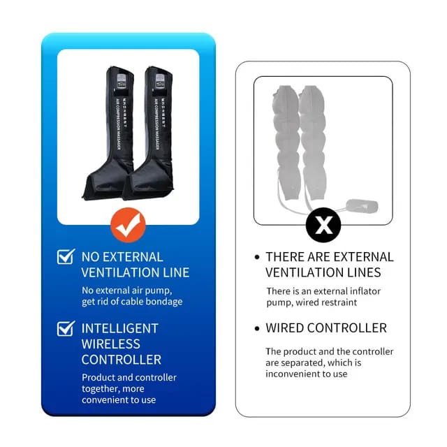 Brand new air compression technology. Easy travel, no connective lines. Rechargeable battery.