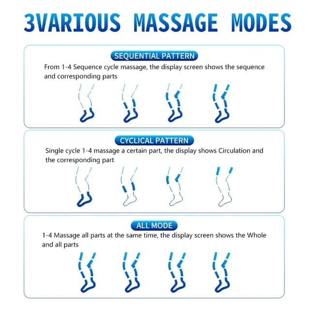 A sequential lymphedema machine is a medical device used to manage lymphedema, a condition characterized by swelling due to the accumulation of lymph fluid. The machine applies sequential pressure to different parts of the body, usually through inflatable sleeves or garments, to help improve lymphatic circulation and reduce swelling. This sequential pressure helps move excess fluid from the affected area towards the body's lymphatic drainage system for more efficient removal. Can be used for sports recovery